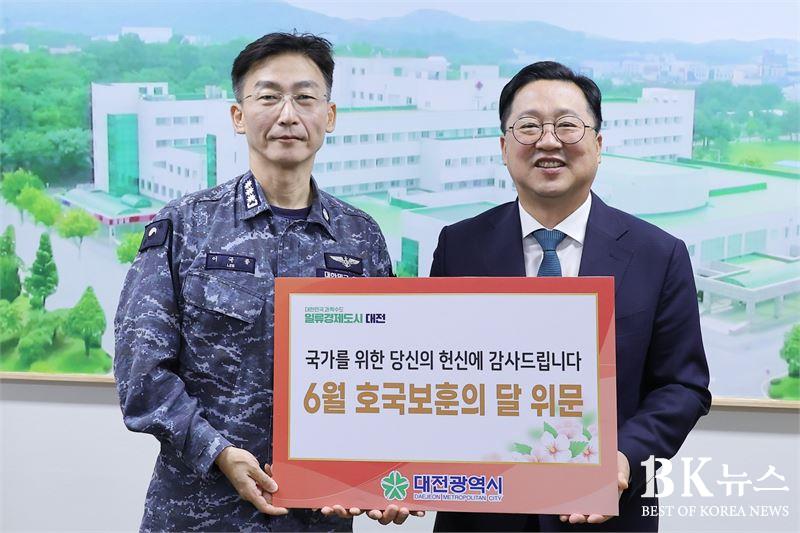이장우 대전시장은 6월 호국보훈의 달을 맞아 12일 국군대전병원과 대전보훈요양원을 방문하여 부상 장병 및 국가유공자들에게 위문품을 전달하고 감사와 위로의 마음을 전했다.