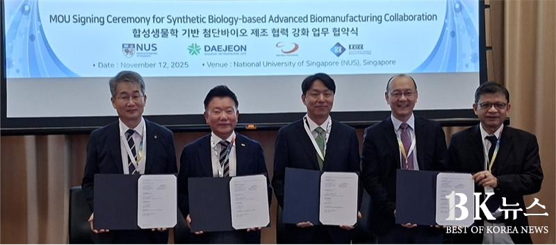 대전시는 합성생물학 분야에서 세계적 선도기관인 싱가포르 국립대(NUS)와 첨단 바이오제조 공동연구 및 국제협력을 위한 업무협약(MOU)을 12일 체결했다.