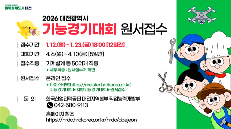 대전시는 2026년도 대전광역시 기능경기대회 참가자를 23일까지 모집한다.