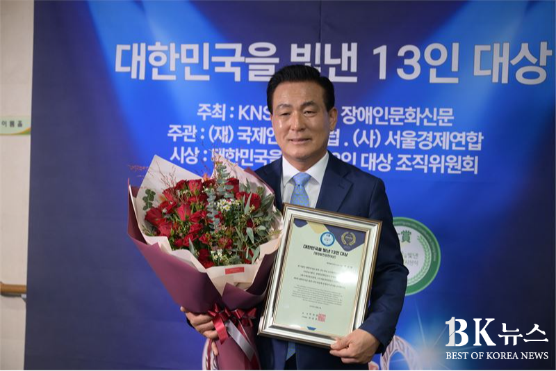 백성현 논산시장이 지난 10일 서울 영등포 이룸센터에서 열린 ‘대한민국을 빛낸 13인 대상’ 시상식에서 행정발전 부문 대상을 수상했다.
