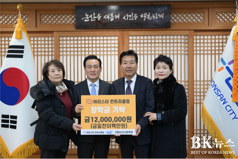 시 관계자는 지난 18일 오후, 관내 골프장 ‘아리스타 컨트리클럽’의 권순민 회장과 직원들이 시청을 찾아와 장학금 1,200만 원을 논산시장학회로 기탁했다고 전했다. 이 장학금은 아리스타 컨트리클럽 직원들이 십시일반 모금한 것으로 알려져 의미를 더했다. 또한 아리스타 컨트리클럽은 올해 초 어려운 이웃을 돕고자 성금 1천만원을 기부한 바도 있다. 권순민 회장은 “지역 학생들의 잠재력은 키우고, 경제적 부담은 덜어주는 일에 보탬이 되고 싶다”며 기탁 배경을 밝혔다.