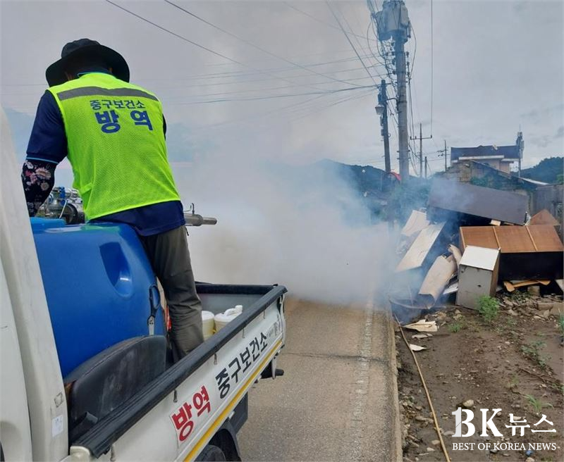 대전 중구는 최근 집중호우로 인한 침수 피해 가구를 대상으로 감염병과 해충 발생을 차단하기 위해 지난 22일부터 긴급 방역 소독을 실시하고 있다고 밝혔다