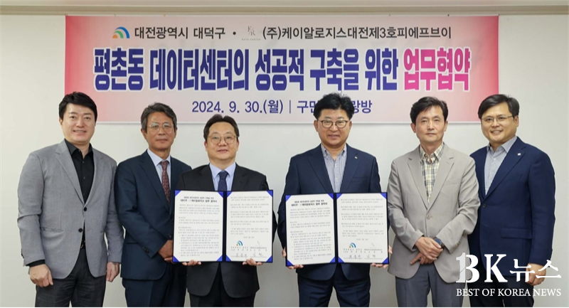 대전 대덕구는 지난 30일 (주)케이알로지스대전제3호피에프브이와 평촌동 데이터센터의 성공적 구축을 위한 업무협약을 체결했다고 밝혔다.