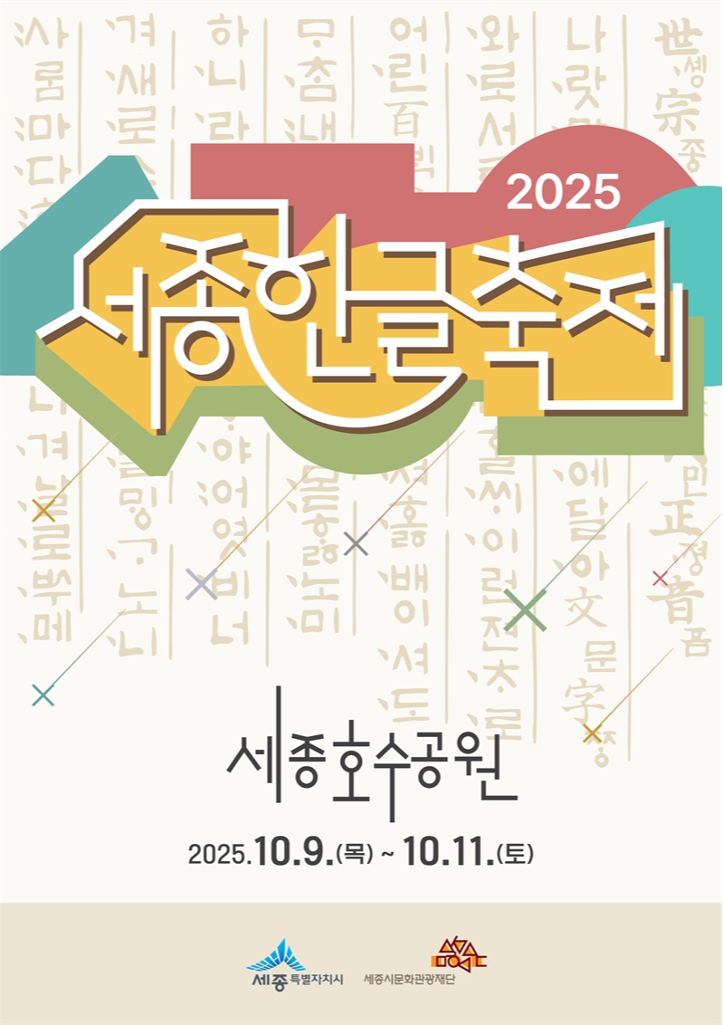 세종특별자치시가 오는 9일 한글날을 시작으로 11일까지 3일간 세종호수공원 일원에서 ‘2025 세종한글축제’를 개최한다고 밝혔다.